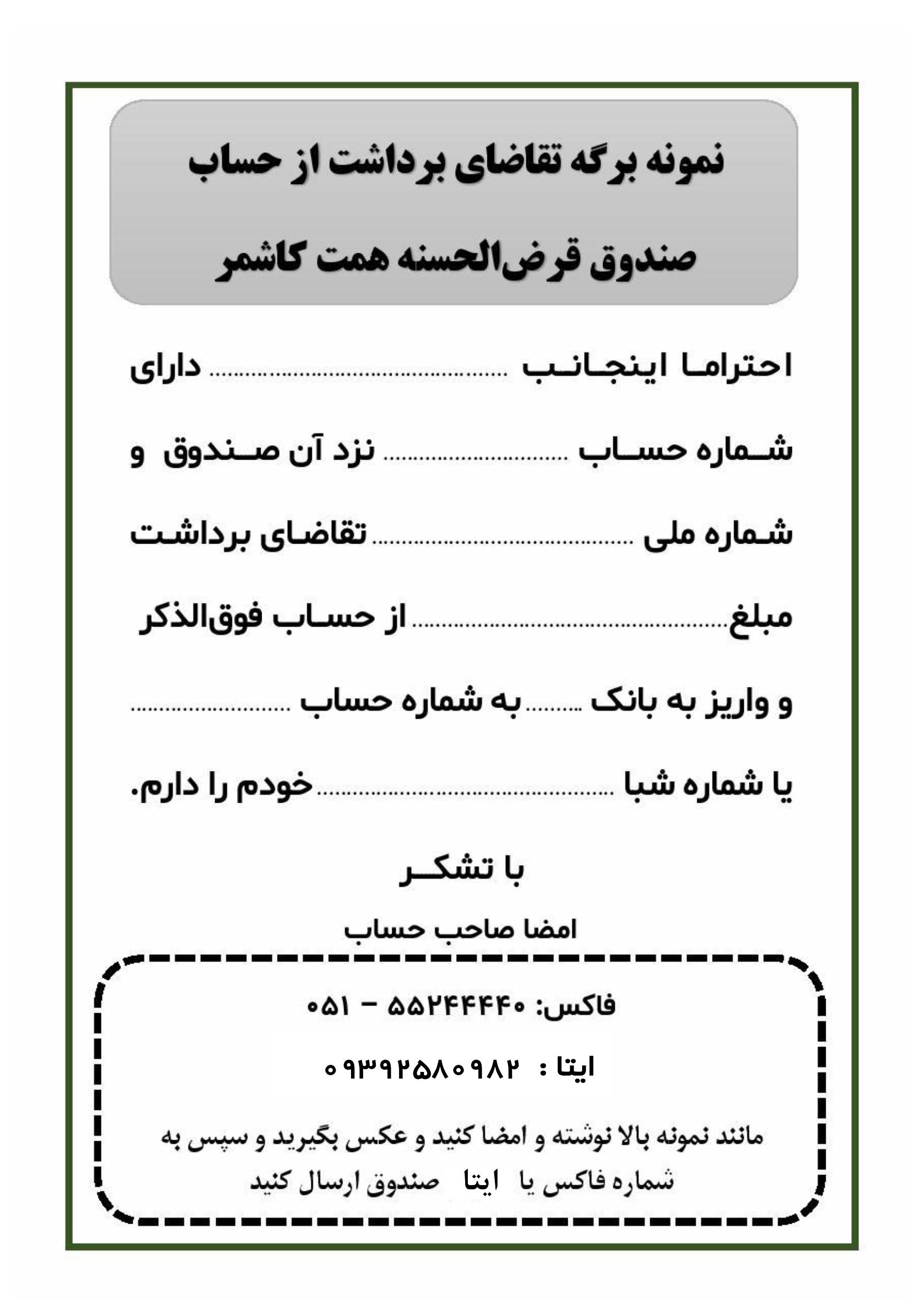 نمونه تقاضای برداشت از حساب